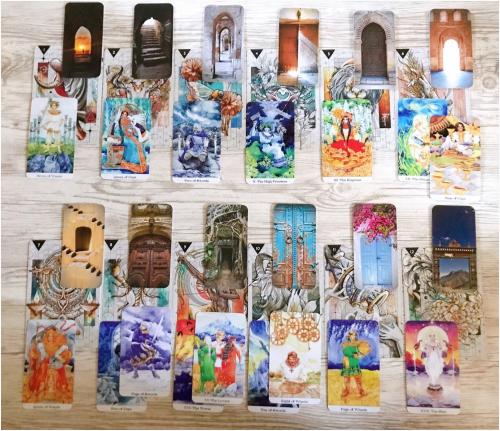 下のほうにあるタロットカードは、今回はちょっと華やかめの絵柄のものを使用してみました。