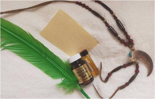 ちょっとだけ手を加えた紙にマジカルオイルを垂らし、緑色の羽ペンで一文字ずつ、途切れてしまった縁を丁寧に結び直すよう願いを込めました。また、お心を守るべく浄化のオイルも併用しました。